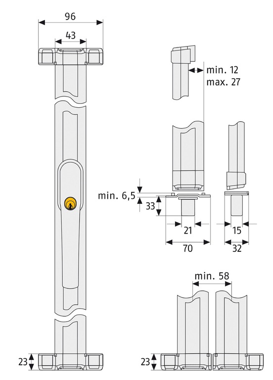 Verschluss des Fenstergriffs über den Druckzylinder, Öffnen mit dem Schlüssel