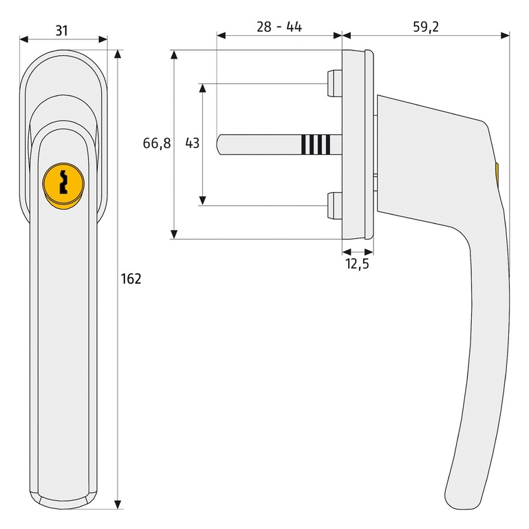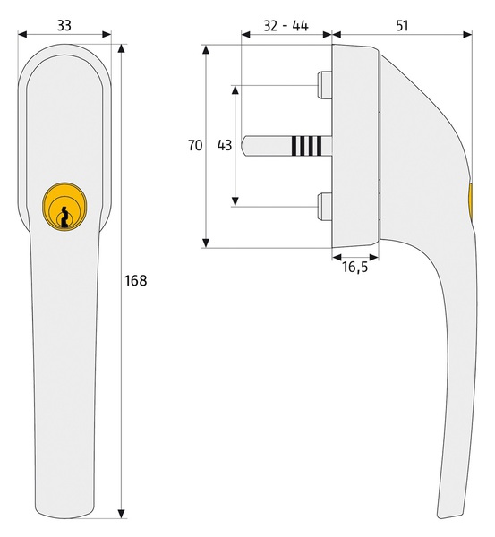 Abschließbarer Fenstergriff nach DIN 18267 Klasse 2